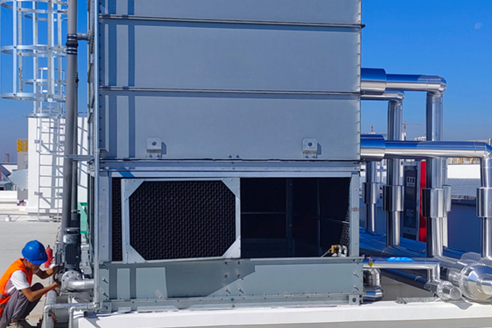 防冻:在寒潮期间,环境温度可能会很低,导致设备出现冻结、凝固、析出结晶等现象。因此,需要确保设备在寒潮期间保持适当的温度,避免超出正常工作温度区间,对于正在使用中的设备,需要开启循环水塔或冰水机的电辅助加热功能,配有散热风扇调节器的循环水塔,可以调节水塔的散热扇的开启温度,另外,为了降低循环冷却水的凝固点,可在循环的水路中添加适量的乙二醇或防冻液,一般按量添加约35%即可。